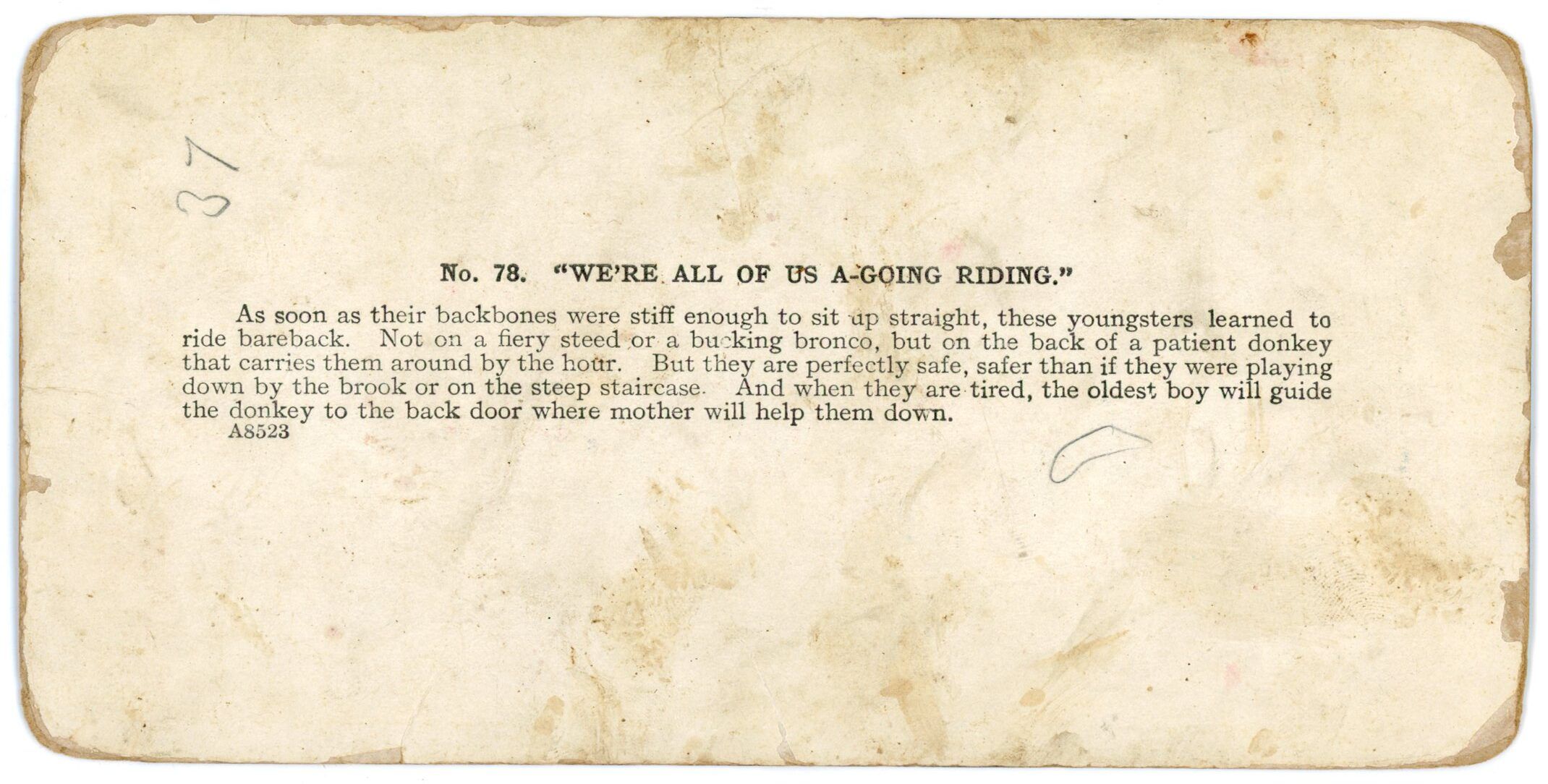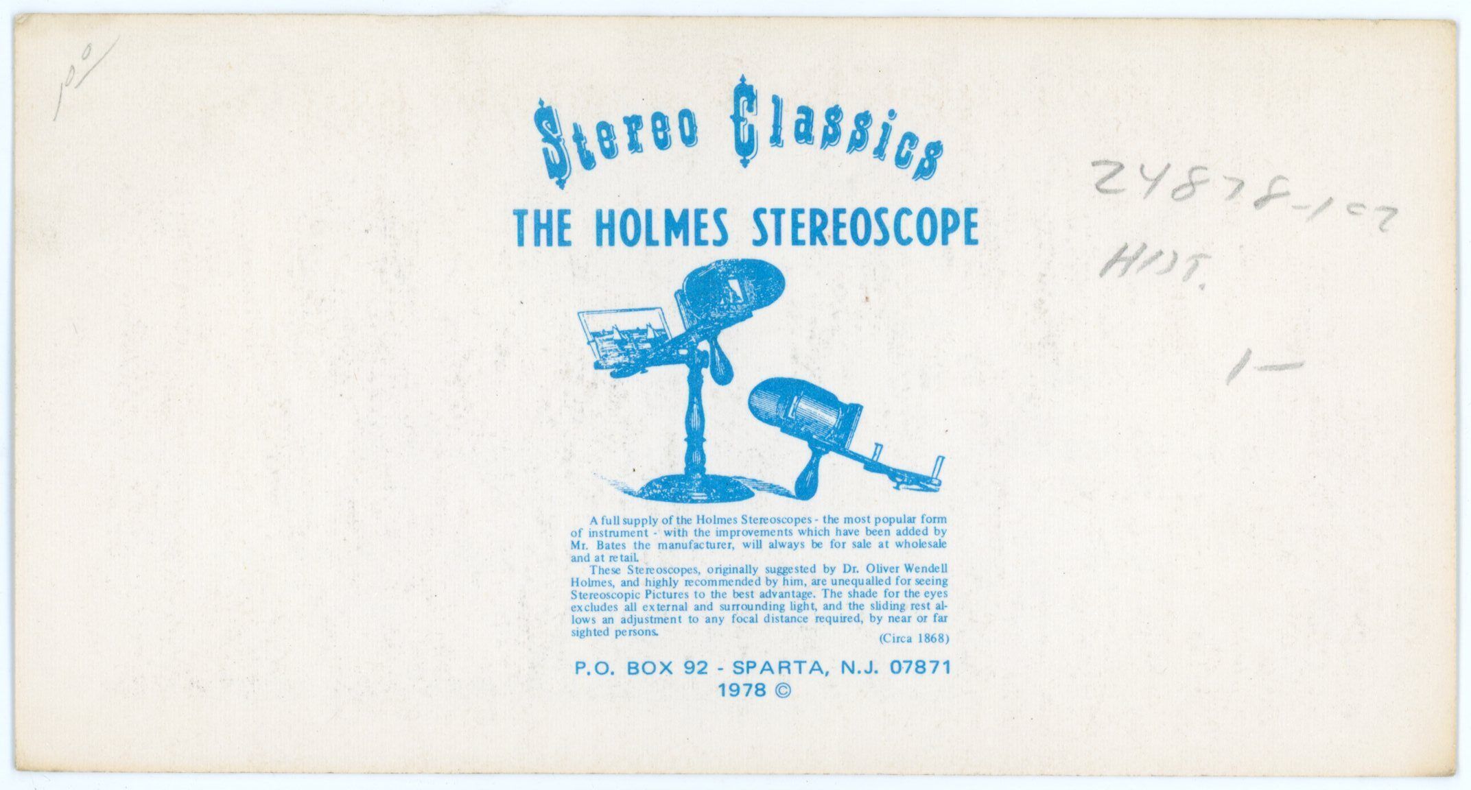 To view a stereograph photo card, you need diverge or relax your eyes, focusing beyond the image as if you’re looking through it, not directly at it. I recommend practicing the same way you might have learned to see “magic eye” pictures, because the same eye skills apply! Hold the image close to your face, then slowly pull it away while maintaining this distant focus, or use the cross-eyed method by focusing in front of the image. The 3D image will appear once your eyes adjust and align the internal patterns correctly.