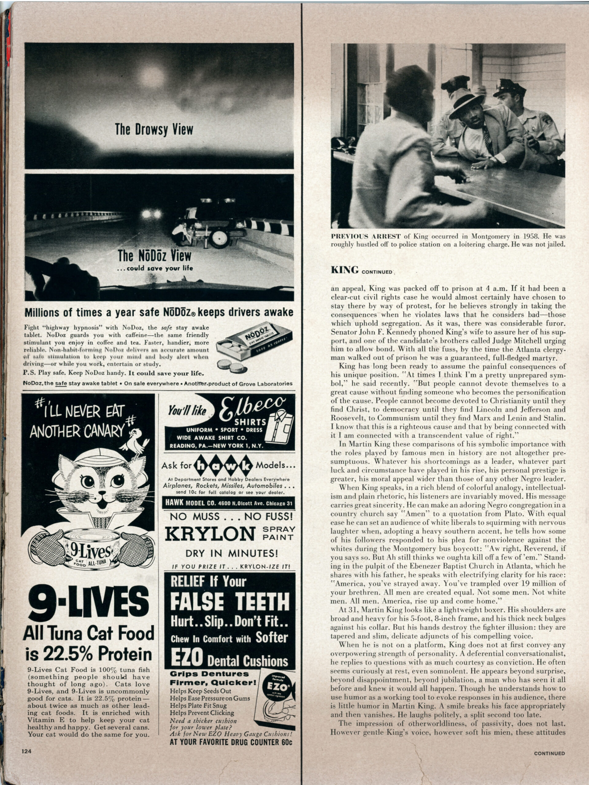Article about Martin Luther King Jr, from Life magazine published November 7th 1960. Page 5 of 7.
