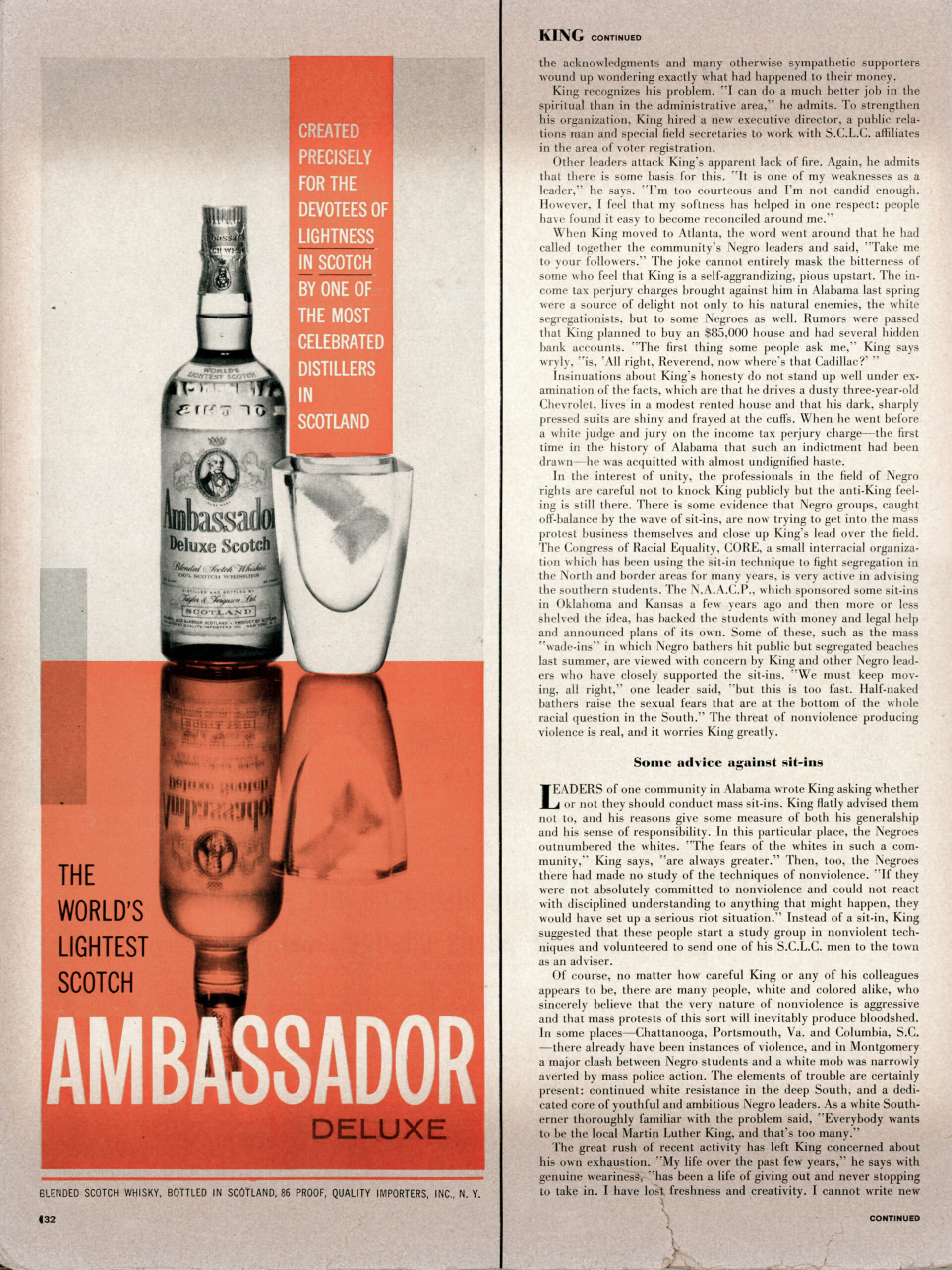 Article about Martin Luther King Jr, from Life magazine published November 7th 1960. Page 6 of 7.